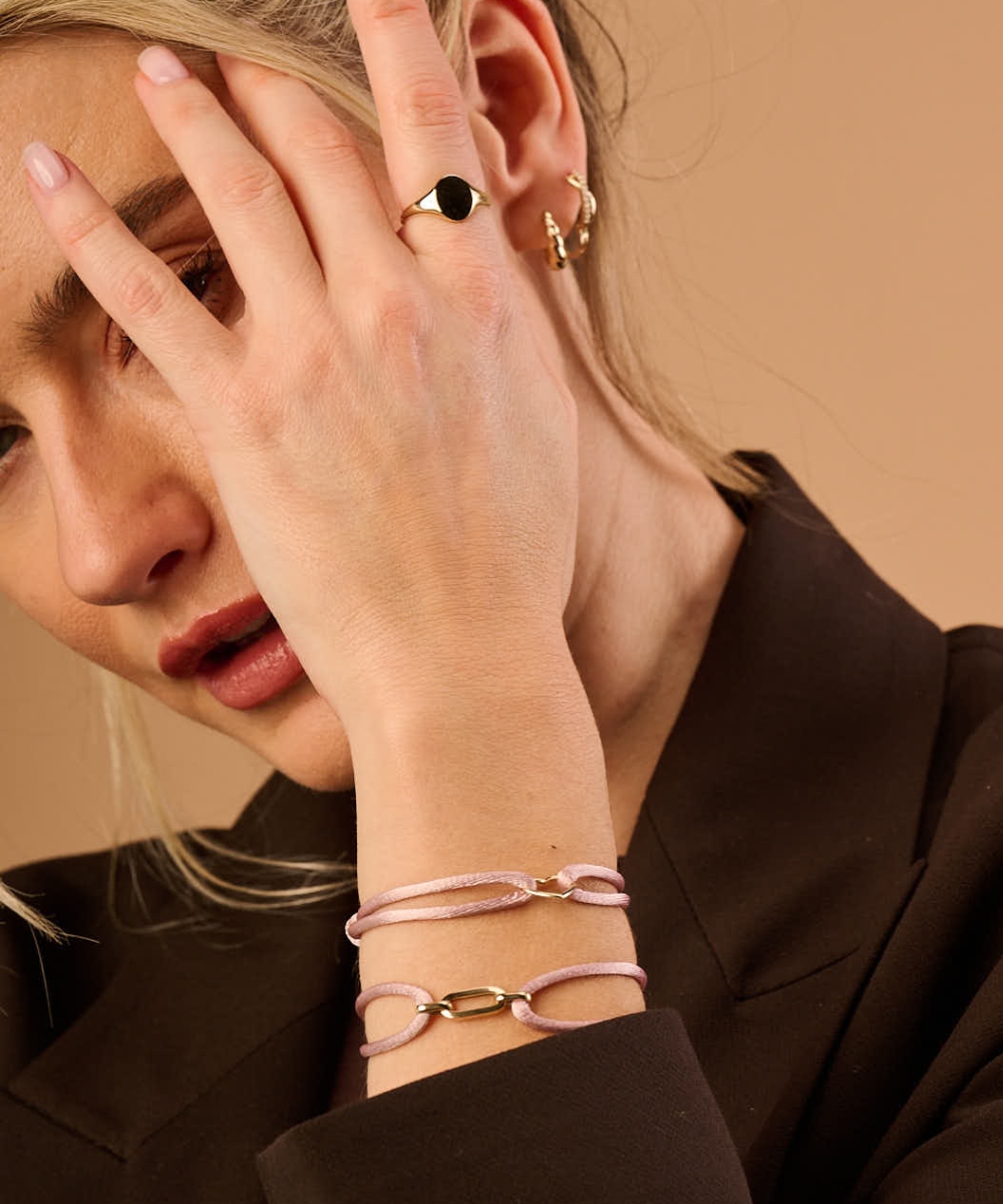 Unsere Armbänder sind fein und leicht zu tragen – von zarten Gliederketten bis hin zum eleganten Paperclip-Stil. Trage ein einzelnes Detail oder kombiniere verschiedene Texturen zu einem persönlichen Ganzen.