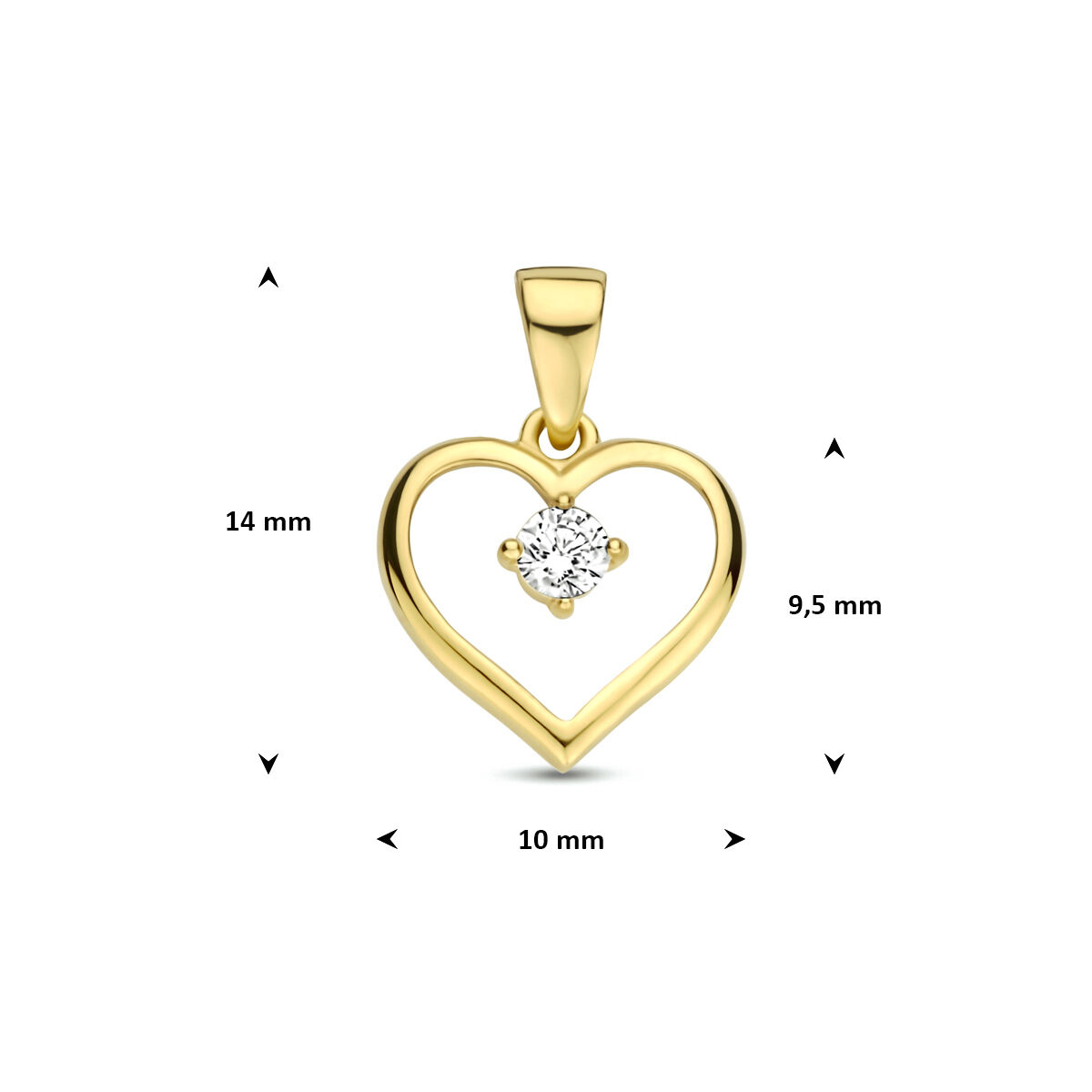 9k Anhänger Herz Zirkonia 9,5 mm