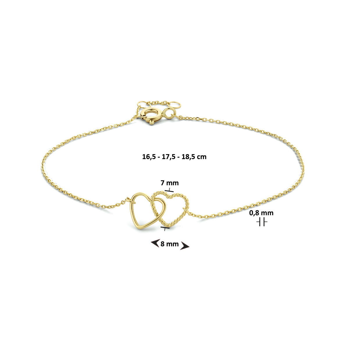 9k Armband Herzen 16,5 - 17,5 - 18,5 cm