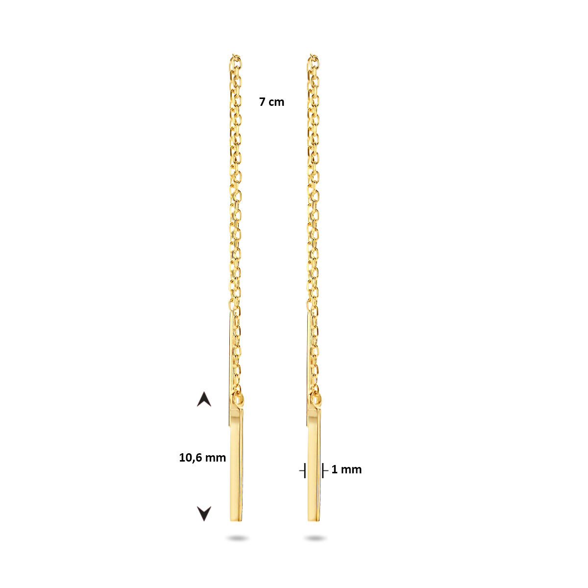 9k Ohrringe mit Durchzugverschluss Balken 70 mm
